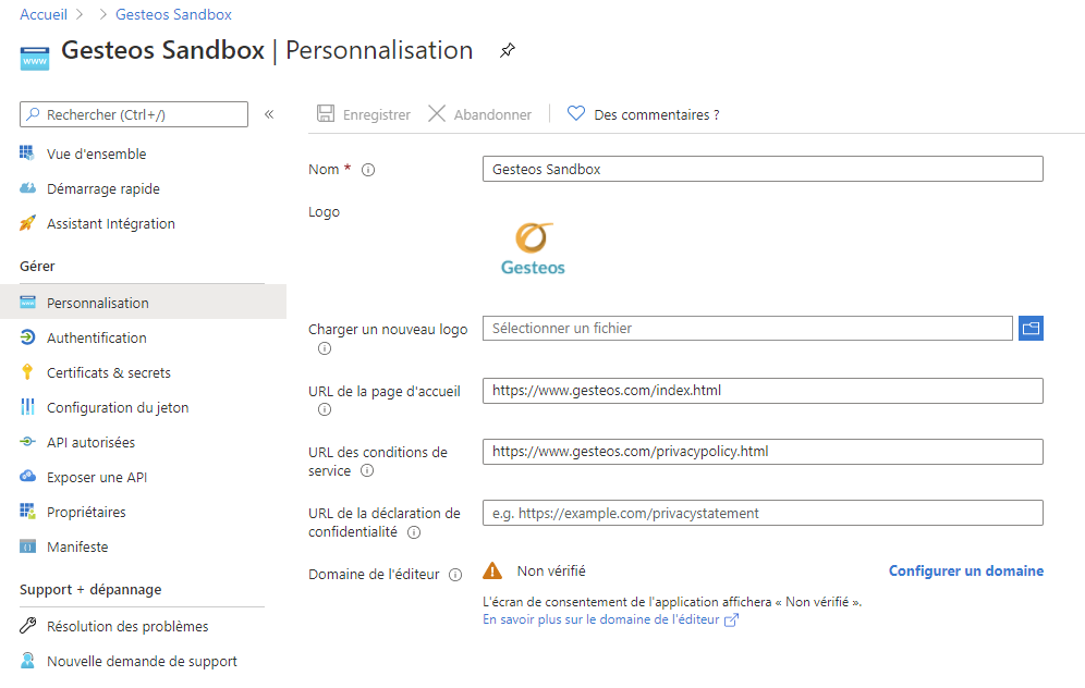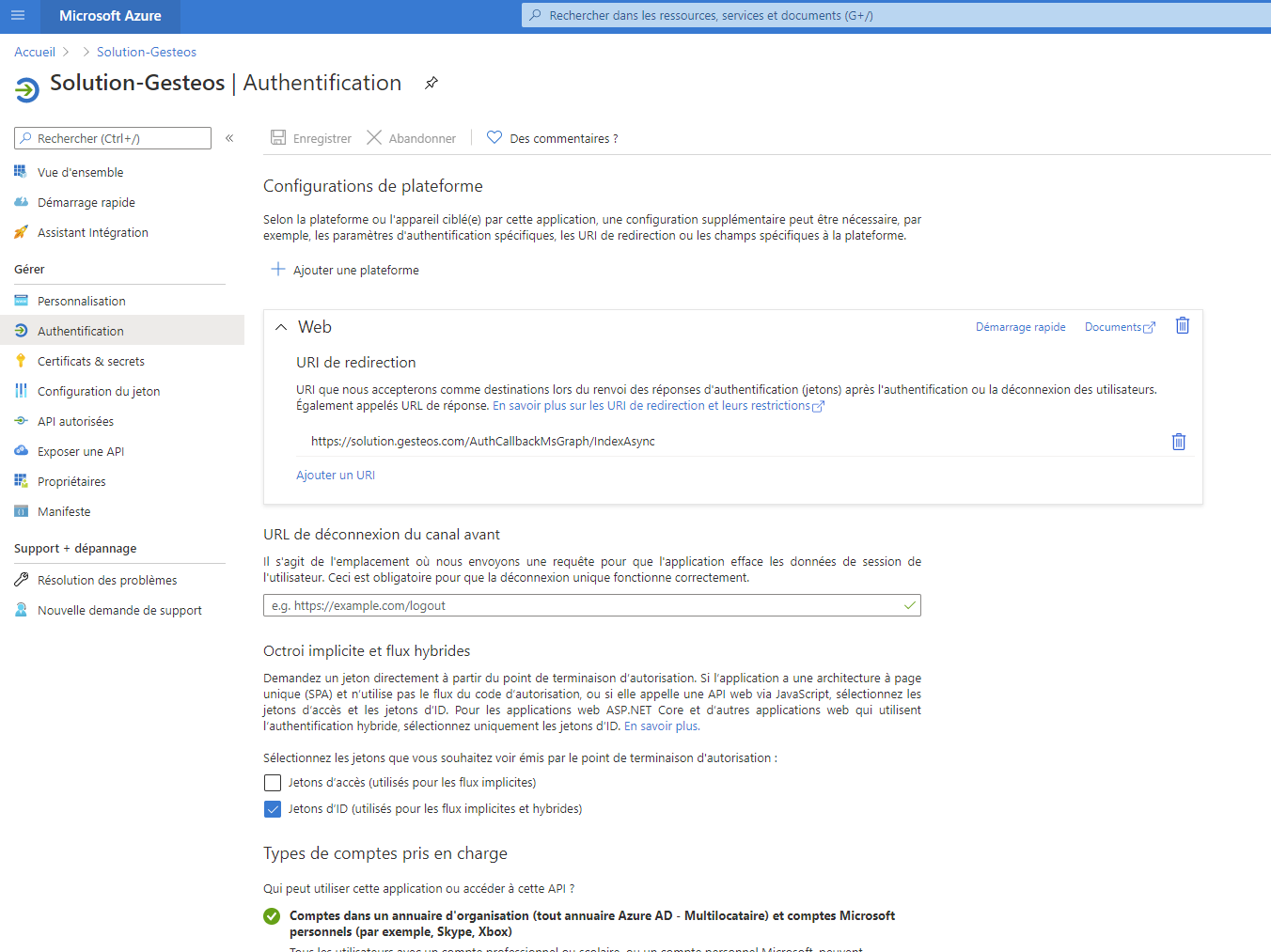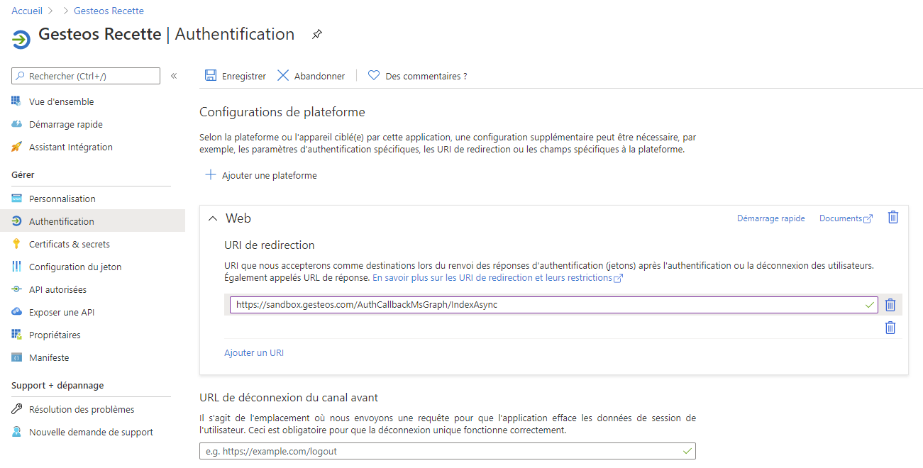 b. Exemple : https://sandbox.gesteos.com/AuthCallbackMsGraph/IndexAsync