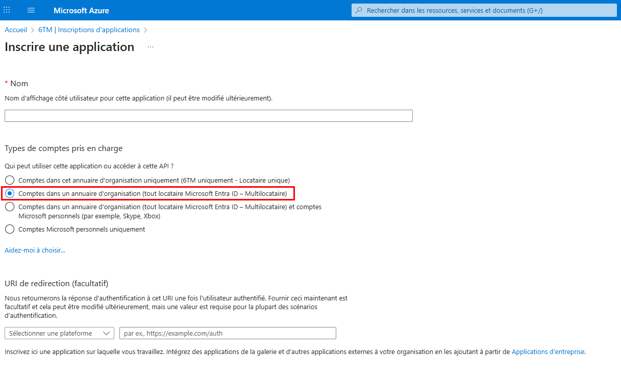 URI de redirection : https://{nom de domaine}/AuthCallbackMsGraph/IndexAsync