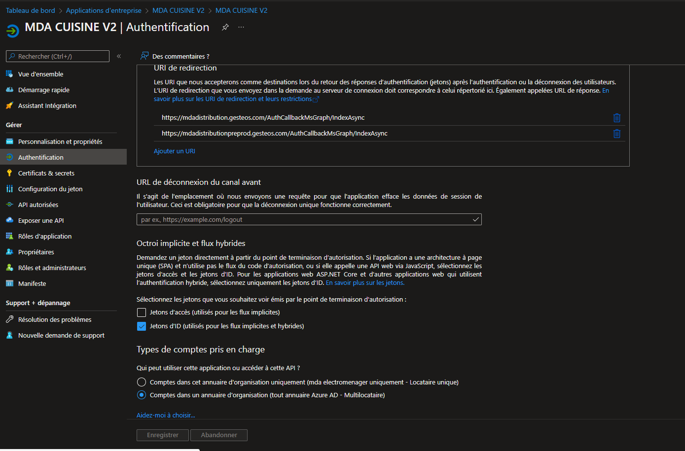 a. URI de redirection : https://{nom de domaine}/AuthCallbackMsGraph/IndexAsync