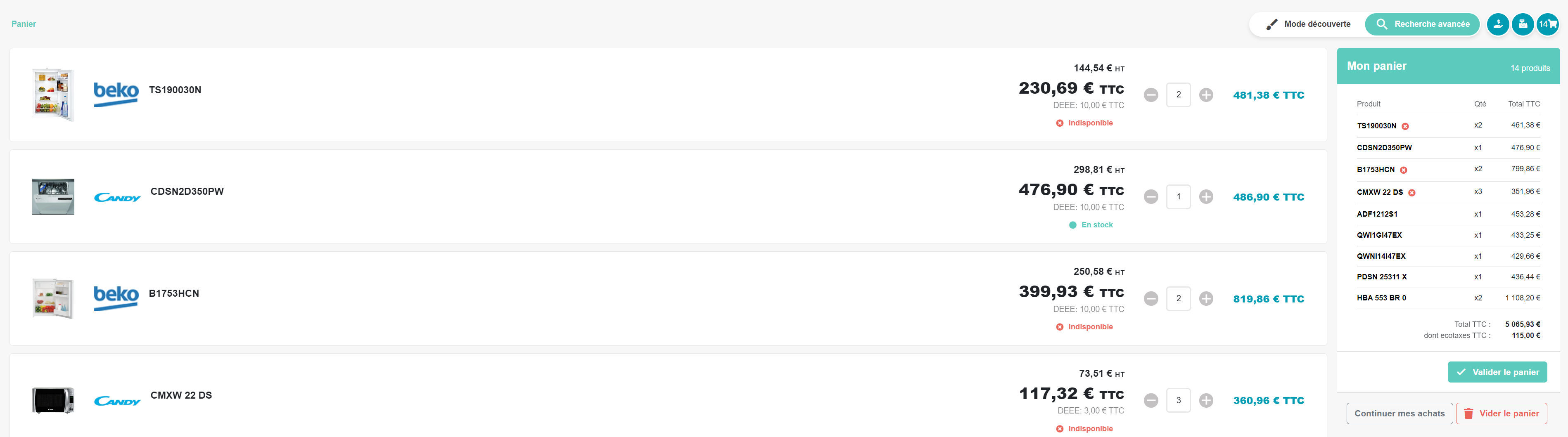 Un bouton « Vider le panier » : Permet de vider intégralement le panier pour repartir de 0.