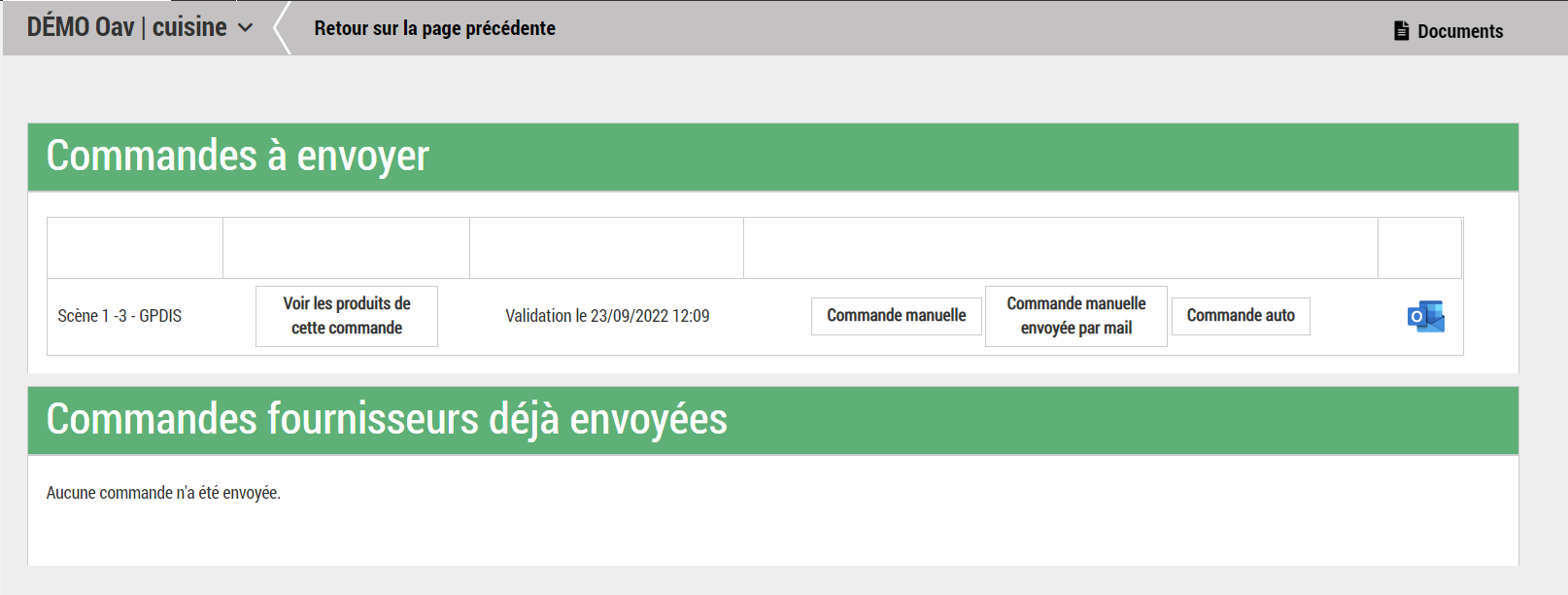 Une fois la ou les commandes préparées, il sera possible d'envoyer celle(s)-ci. L'envoi des commandes GPDIS peut s'effectuer de manière automatique en cliquant sur le bouton « Commande auto » de la ligne concernée.