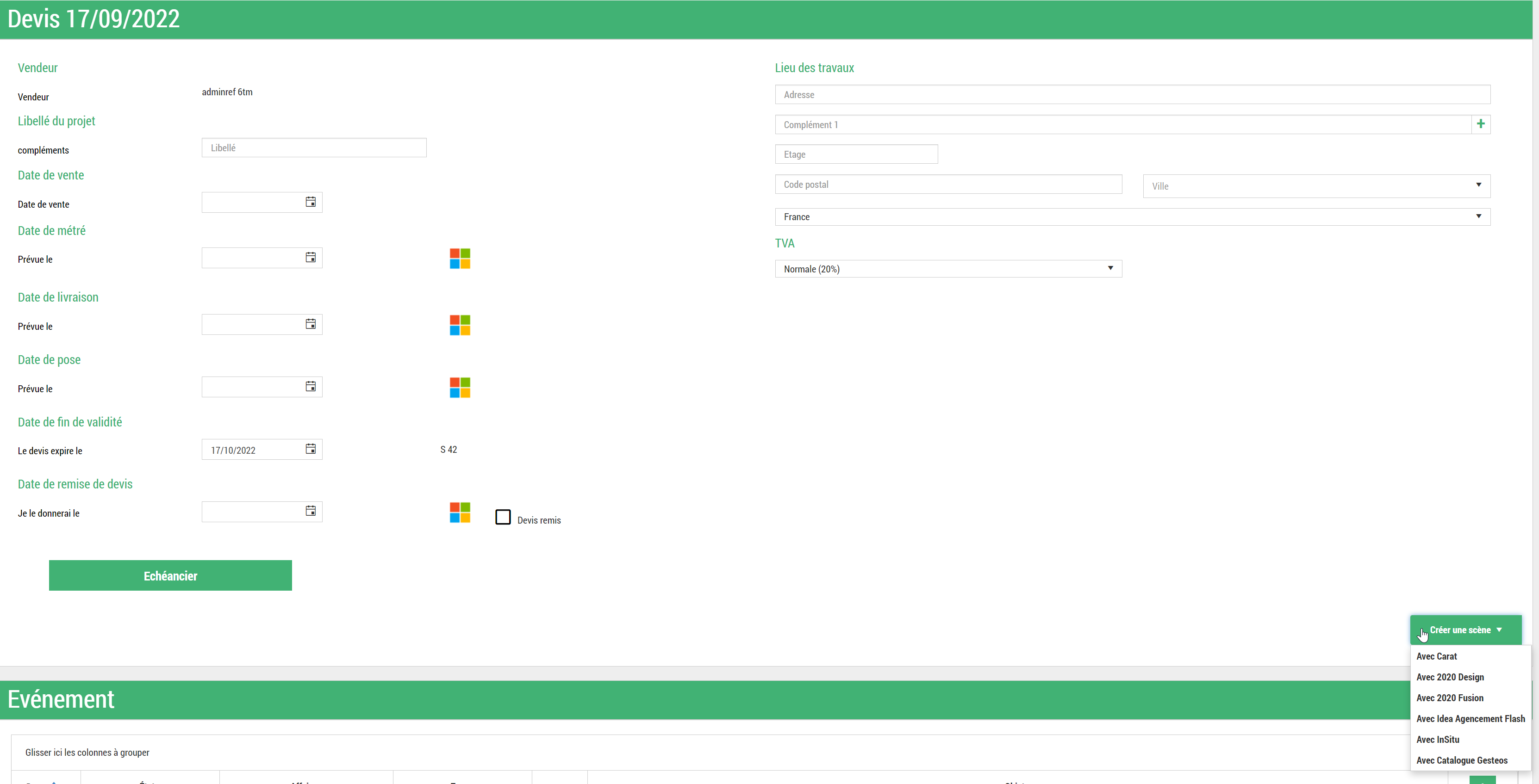 Il est possible de créer une scène en utilisant uniquement le catalogue Gesteos, cela est possible depuis la version socle ou web dans Gesteos :