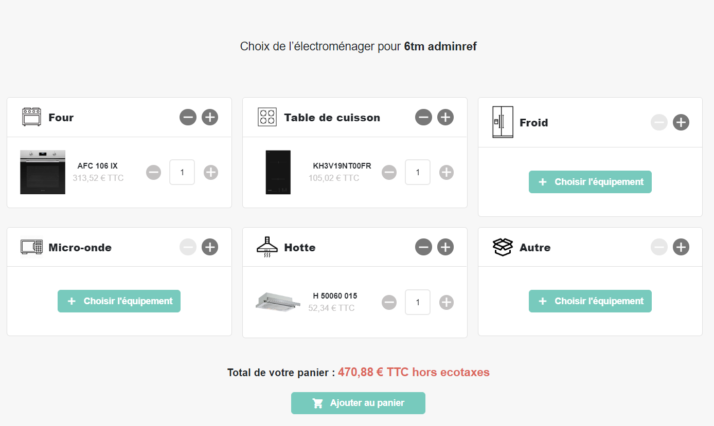 - Le mode avancé : Ce mode permet, d'avoir accès à toutes les catégories d'électroménager et de rechercher plus finement un article voulu. Il est possible de sélectionner des articles en fonction de caractéristiques plus avancées. Exemple : Dans la catégorie des fours, ne sélectionner que les fours pyrolyse ou encore les fours catalyse.