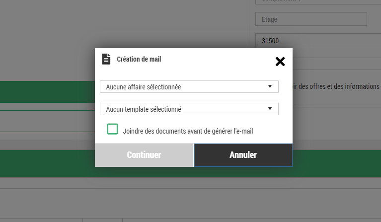 Une case à cocher « Joindre des documents avant de générer l'email »