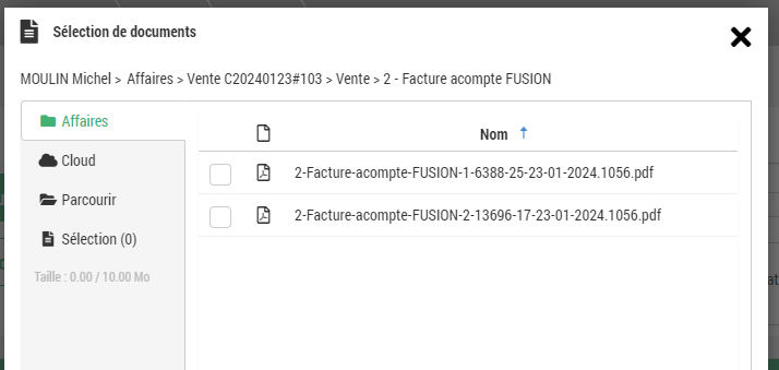 - Permet d'afficher après la validation de la modale, le sélecteur de document ajouté lors de la précédente MEP.
