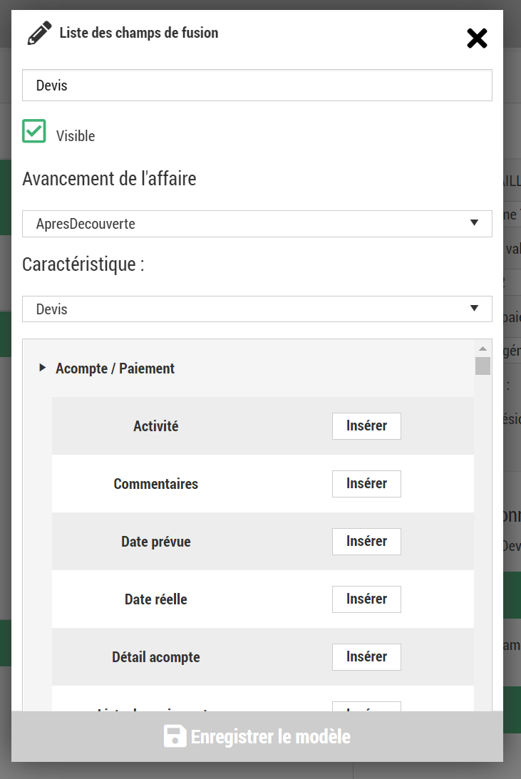 Cliquer sur « Enregistrer » pour valider la création du nouveau modèle.