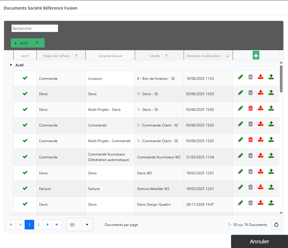 « Actif » : Permet d'indiquer si le document est visible ou non par les utilisateurs de la société de référence et de ses filles. Cette option permet au créateur du modèle de pouvoir tester son modèle avant sa mise en place chez les utilisateurs.