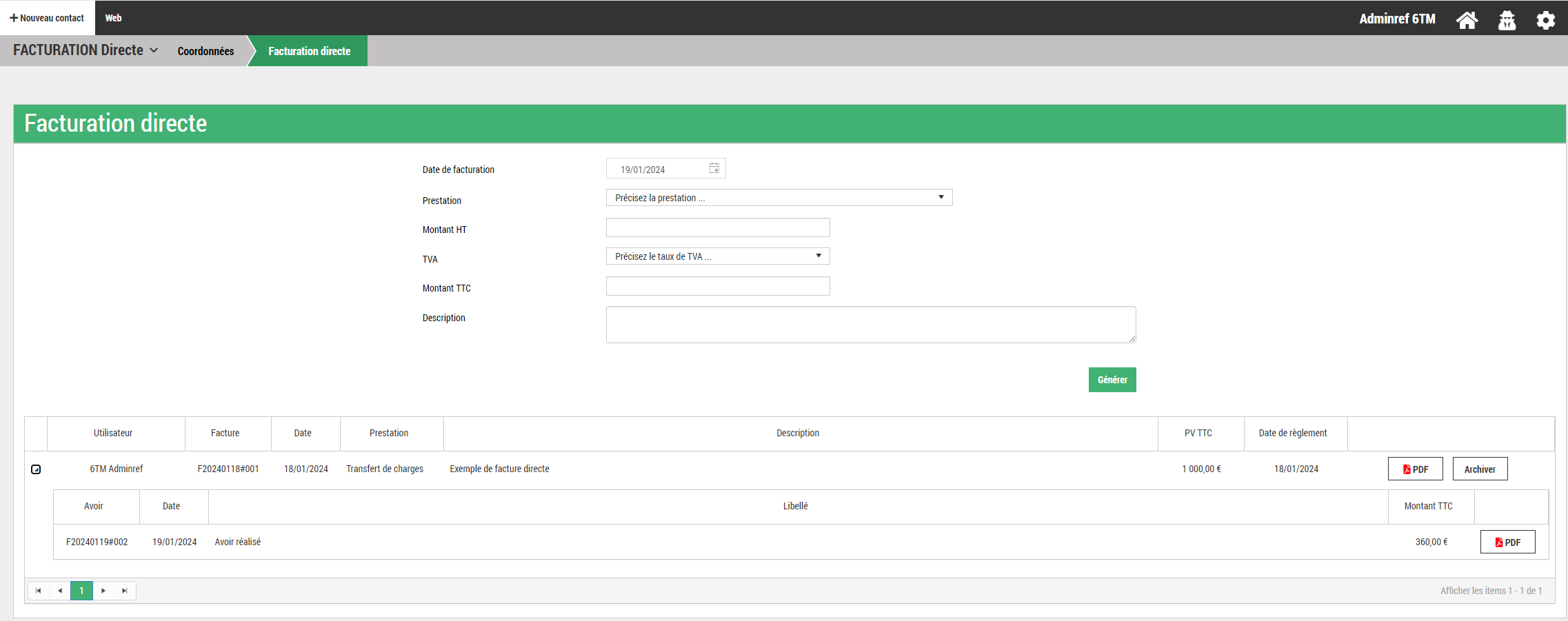 Module Facturation directe