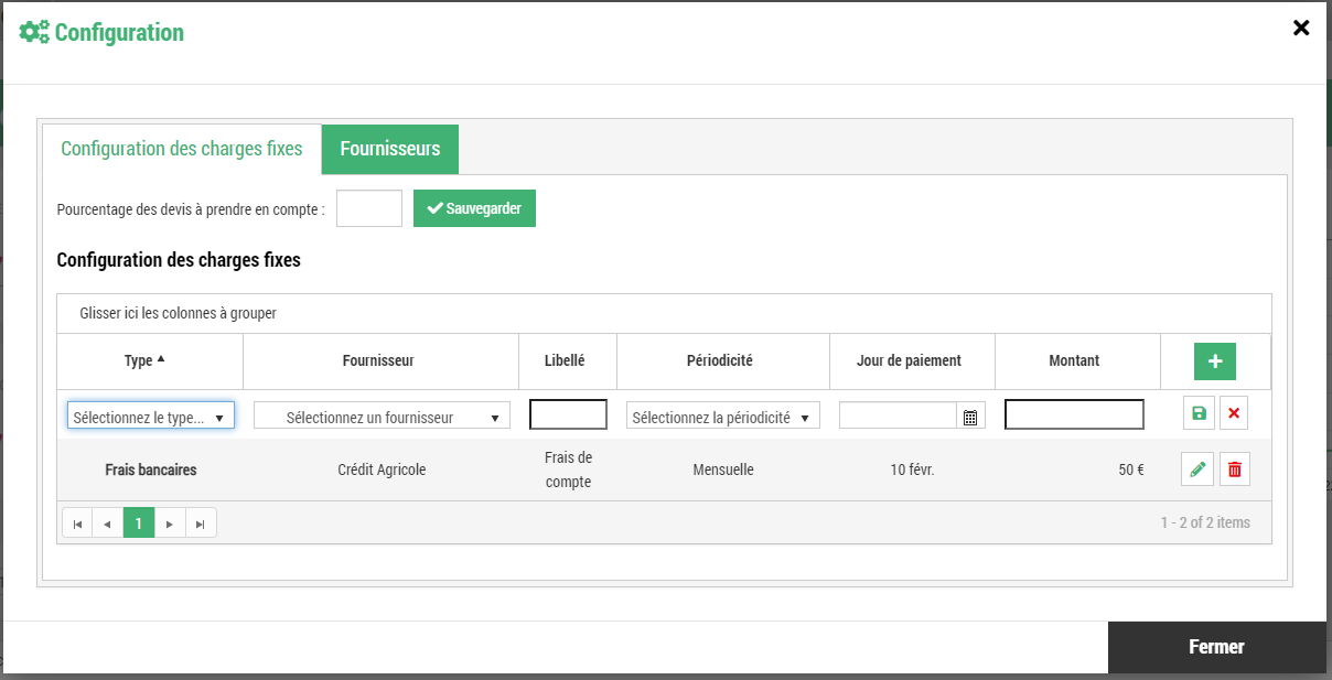 - A noter : Seuls les fournisseurs cochés « Charge fixe du plan de trésorerie » sont affichés dans cette liste.