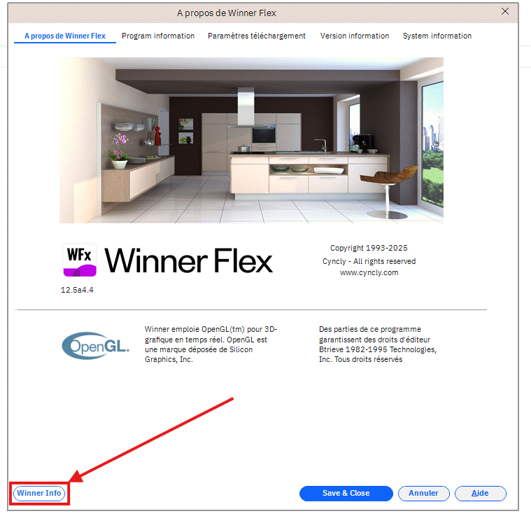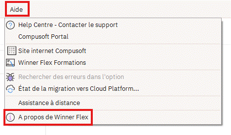 Dans Winner, aller dans le menu "Aide" dans la barre des options (dernière option) puis cliquer sur "A propos de Winner Flex".