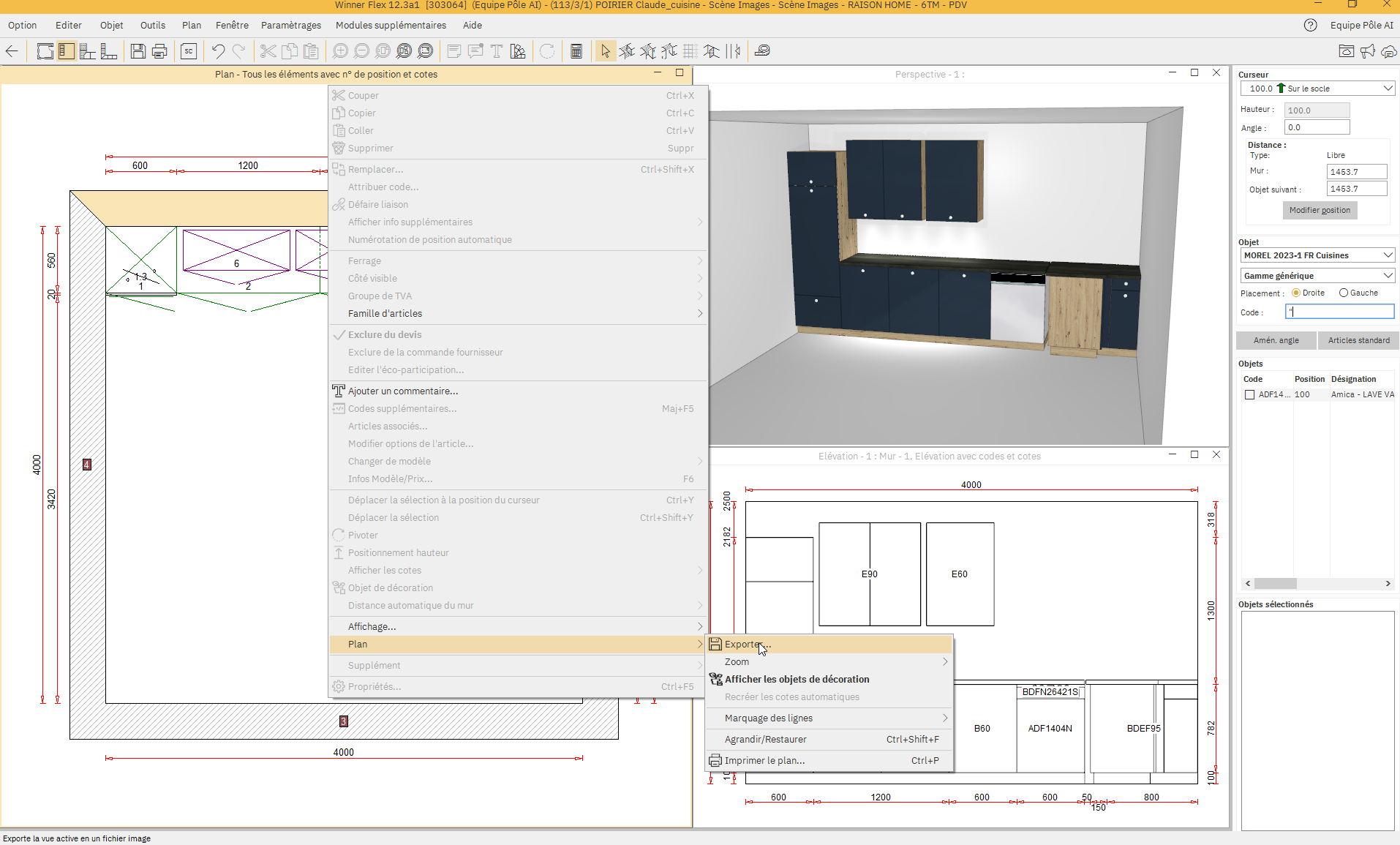 Dans le menu contextuel cliquer sur Plan > Exporter