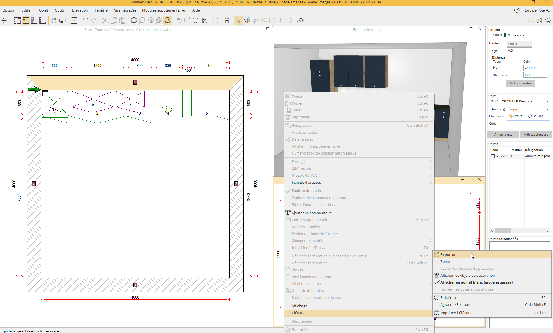 Faire un clic droit sur la fenêtre « Elévation <numéro élévation> ... »