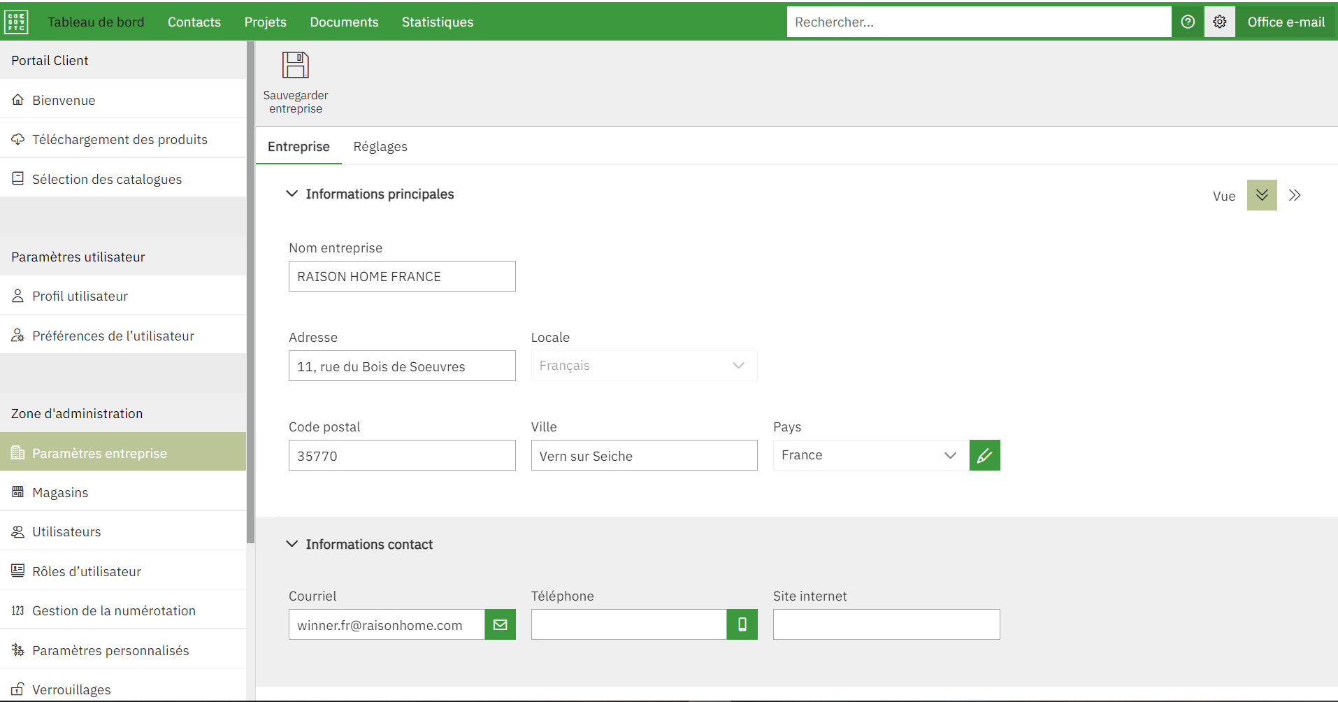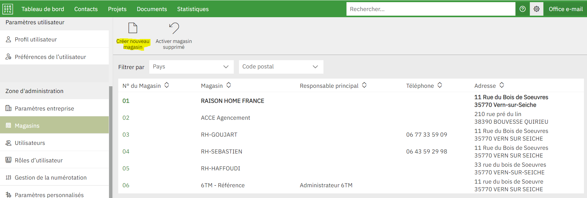 Une fois les informations complétées, cliquer sur le bouton « Sauvegarder magasin » en haut de la fenêtre pour créer ce dernier.