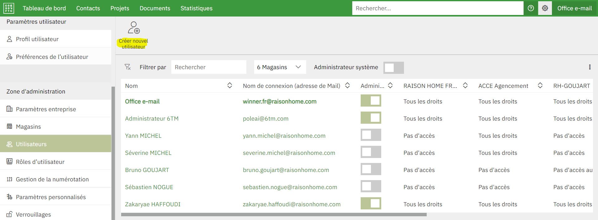 Une fois les magasins créés, il faut créer les utilisateurs Flex.